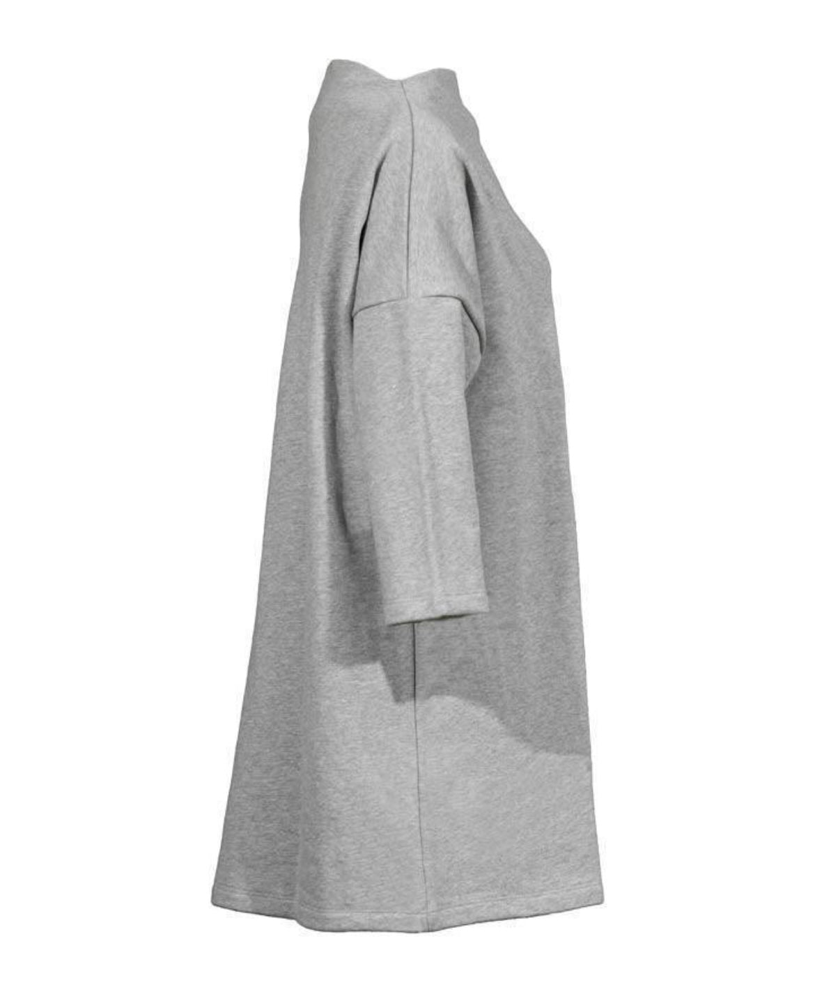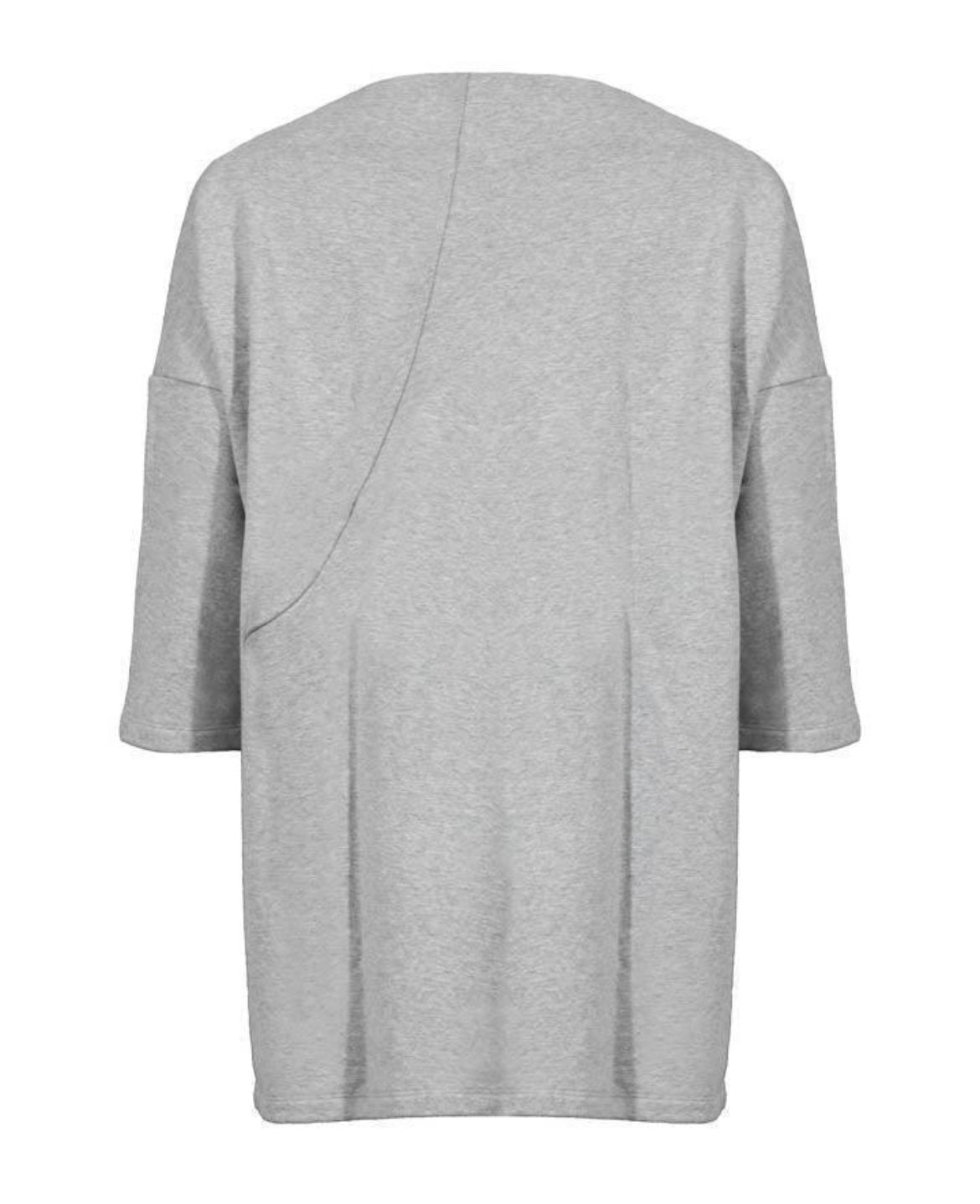 Ayrtight heavy weight french terry tunic with high boat neck, asymmetrical curved detail with integrated pocket and 3/4 length sleeves.